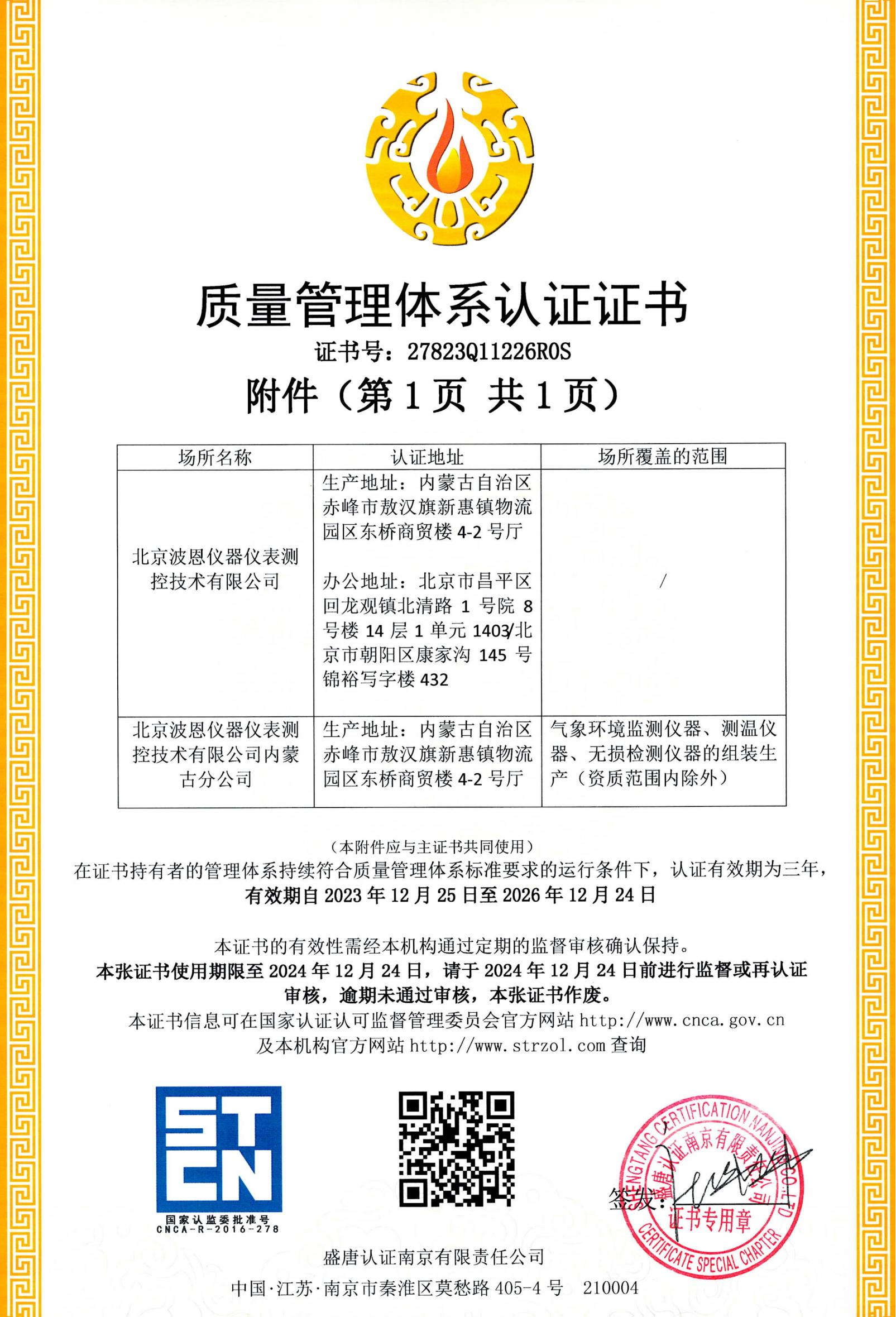 北京波恩儀器公司ISO三體系認(rèn)證證書